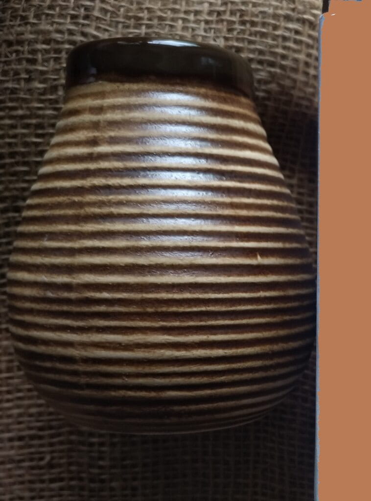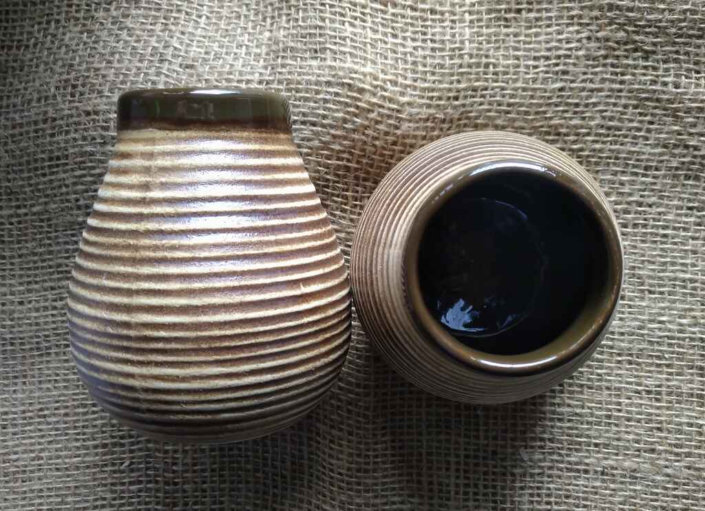 Całe szkliwione ceramiczne naczynie barwione w ciepłe "pszczelarskie" kolory.